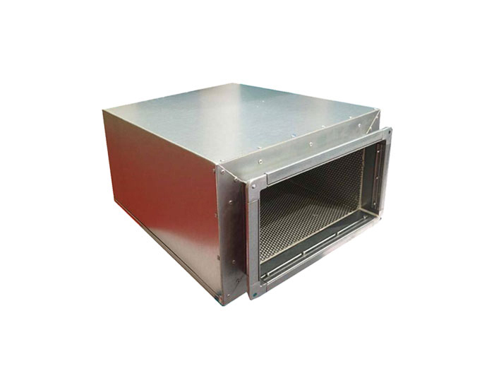 消聲降噪靜壓箱包括靜壓箱本體,靜壓箱本體的上表面和靜壓箱本體的底面均開設(shè)有通口,靜壓箱本體的內(nèi)側(cè)壁通過(guò)銷軸鉸接有兩組等距離排列的消聲片,兩組消聲片相互靠近的一側(cè)面均固定連接有松緊帶,靜壓箱本體的內(nèi)側(cè)壁固定連接有定位板,定位板的上表面固定連接有兩個(gè)吸音棉,兩個(gè)吸音棉相互遠(yuǎn)離的一側(cè)面均與靜壓箱本體的內(nèi)側(cè)壁固定連接,定位板的上表面固定連接有彎板,靜壓箱本體的內(nèi)側(cè)壁固定連接有蜂窩板,蜂窩板的下方設(shè)有過(guò)濾網(wǎng),定位板的上表面開設(shè)有四個(gè)通風(fēng)口。